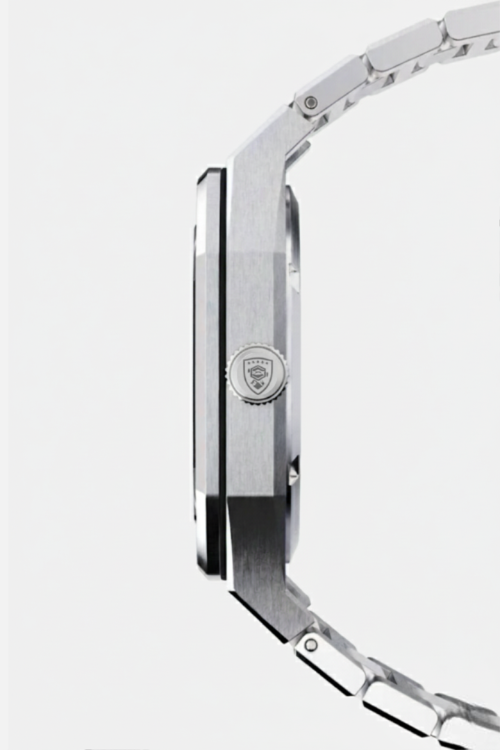 Nuestros relojes están fabricados con acero inoxidable 316L de grado profesional, conocido por su excepcional resistencia, resistencia a la corrosión y brillo duradero. Esto asegura que su reloj mantenga su apariencia impecable a través del uso diario y diversas condiciones.